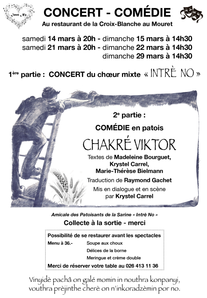14h00 Théâtre: Dou Rififi a Velâ-Le-Pre, pièce composée par des acteurs de la troupe, suivie de