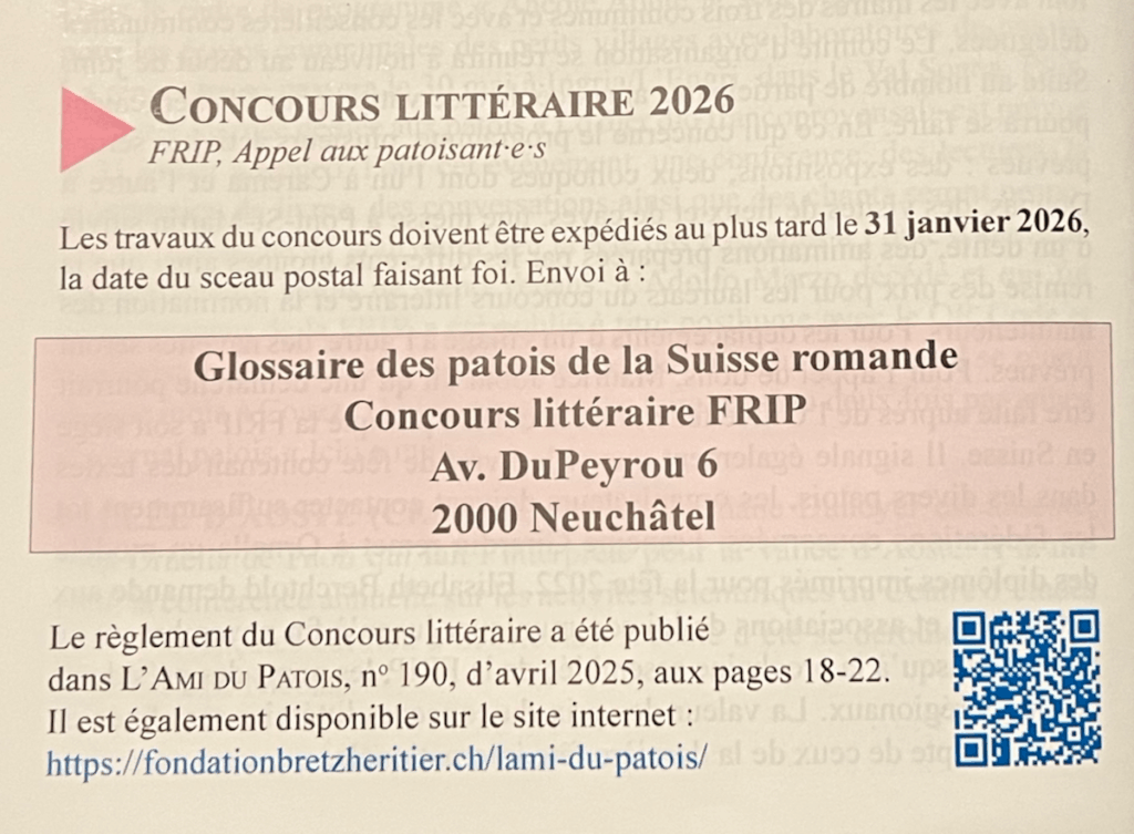 Inscription dans le numéro 1 de l’Ami du patois 2025
